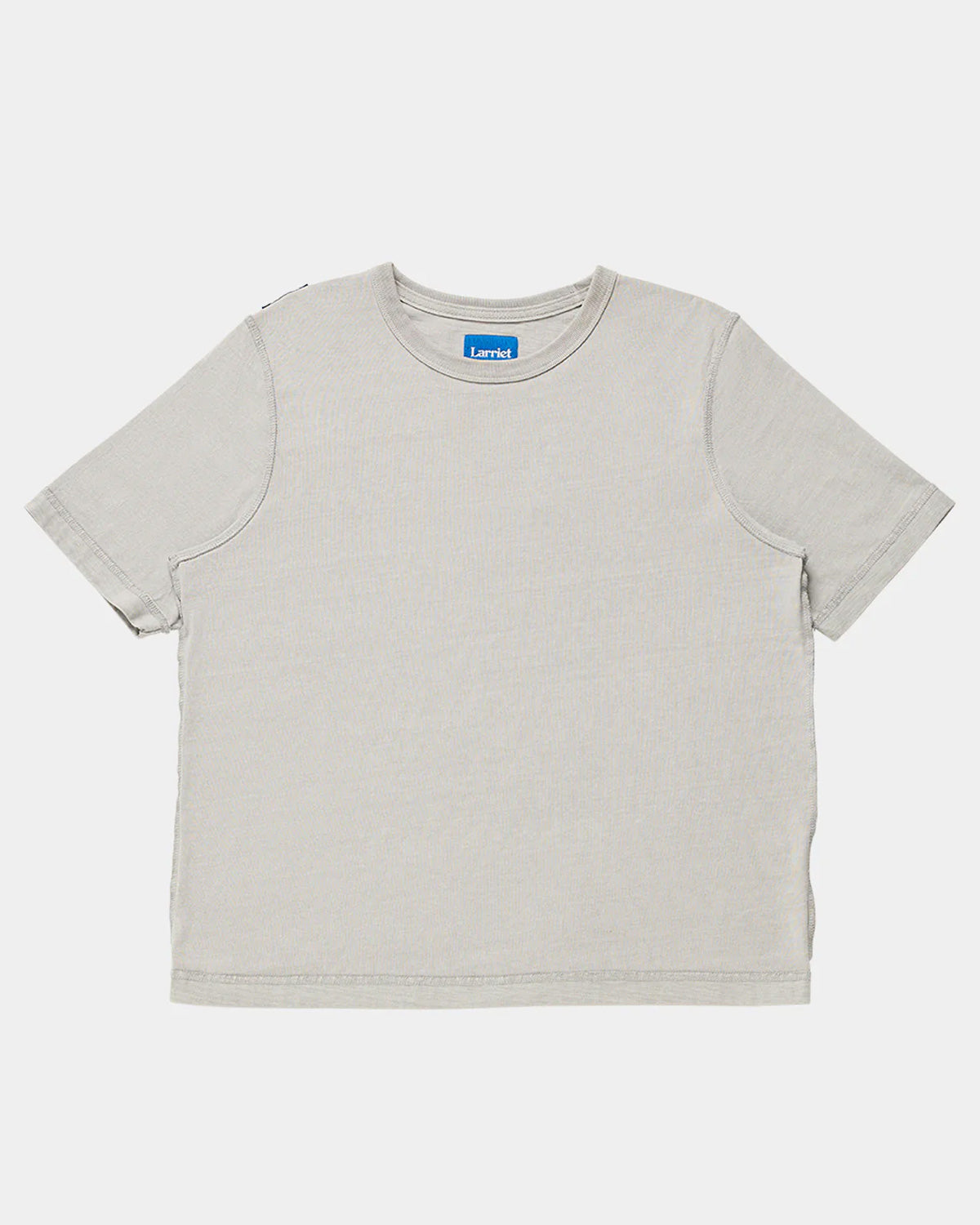 The Blind Tee is a midweight tee made from 100% cotton jersey. This take on a classic, relaxed-fit t-shirt has been constructed inside out, featuring exposed seams. It is designed to endure, crafted in a hard-wearing jersey, and pre-shrunk to maintain its shape. It features twin-needle stitched sleeves and hem, as well as shoulder-to-shoulder neck taping. There is a Larriet woven label at the right shoulder seam.