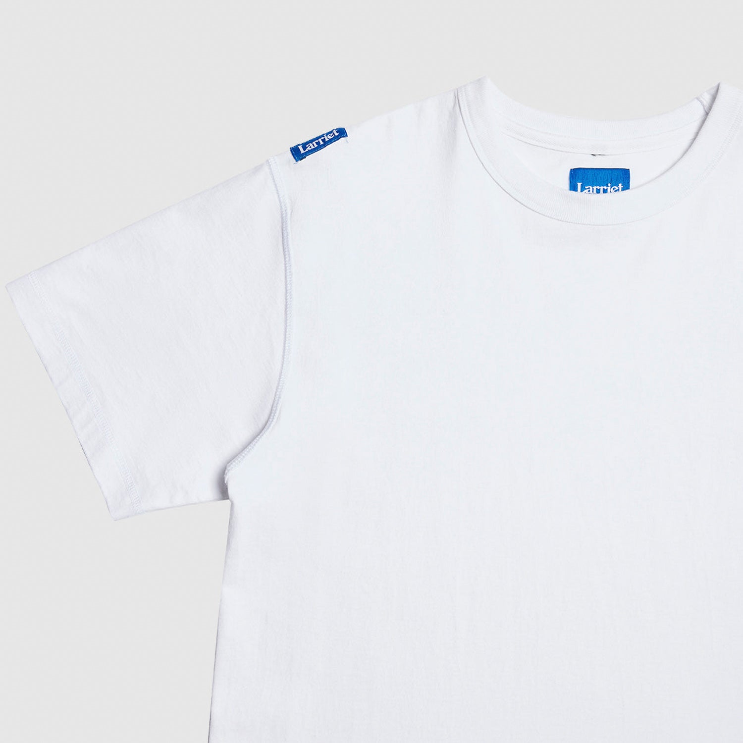 The Blind Tee is a midweight tee made from 100% cotton jersey. This take on a classic, relaxed-fit t-shirt has been constructed inside out, featuring exposed seams. It is designed to endure, crafted in a hard-wearing 32 singles jersey, and pre-shrunk to maintain its shape. It features twin-needle stitched sleeves and hem, as well as shoulder-to-shoulder neck taping. There is a Larriet woven label at the right shoulder seam.