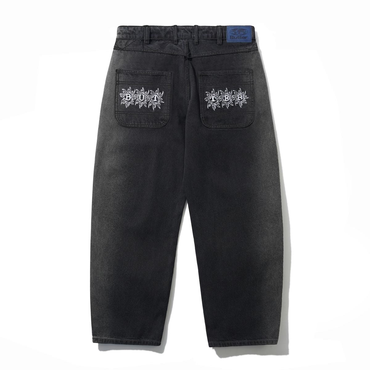 100% Cotton Baggy Fit Denim Jeans, Direct Embroidery On Front Waist Band, Patch Pockets On Back With Direct Embroidery, Zig-Zag Stitch Detail At Fly & Back Yoke, PU Patch On Waist Band, Belt Loops With Internal Drawstring On Waist Band.