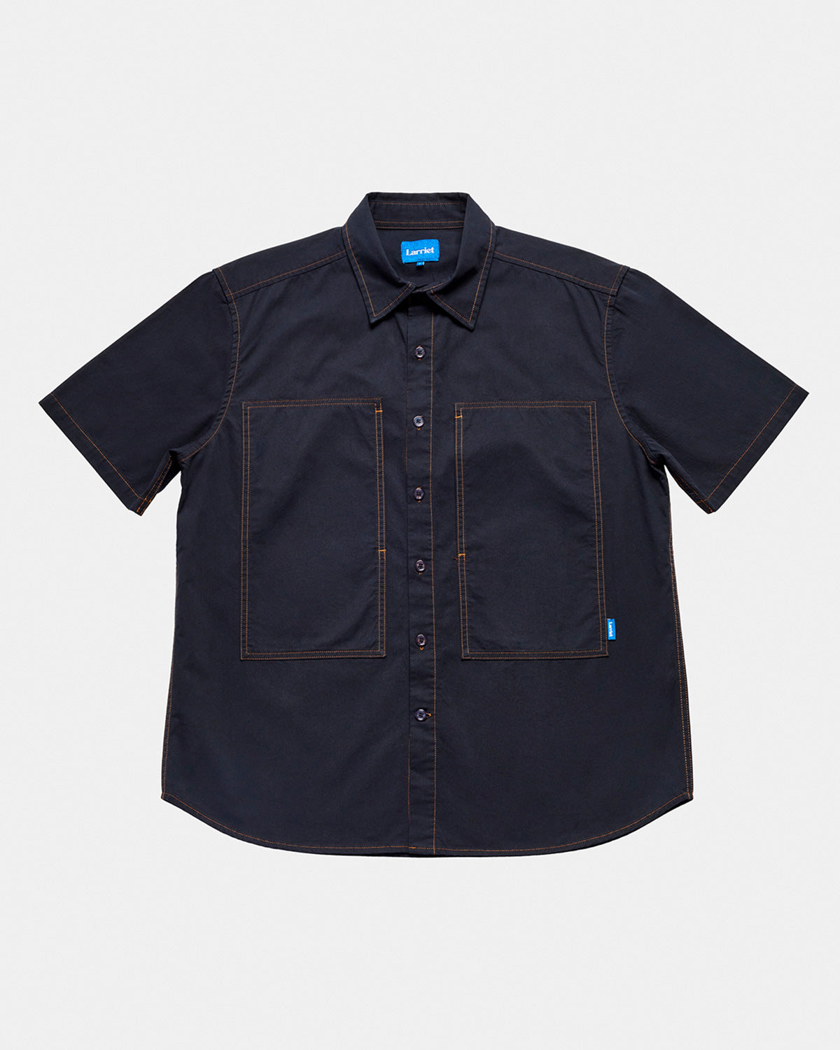 The Cliff Short Sleeve Shirt is a standard-fit, short-sleeve shirt featuring a traditional collar with a stand. Made from 100% cotton plaid with contrast white stitching, it includes ammo-style pockets, and a Larriet woven label.