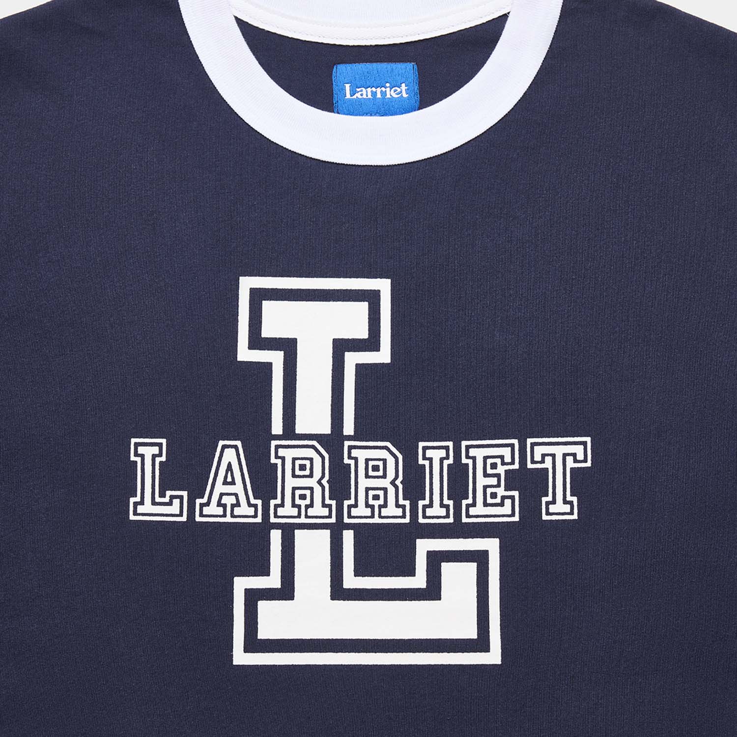 The Navy Tee in navy blue is a midweight tee constructed from 100% cotton with a chest print. This classic, ringer style t-shirt is built to last, crafted from hard-wearing jersey with ribbing at neck and sleeve hems, and pre-shrunk to maintain its shape. It features twin-needle-stitched sleeves and hem, as well as shoulder-to-shoulder interior neck taping. This ringer style tee features contrast stitching across the shoulder.