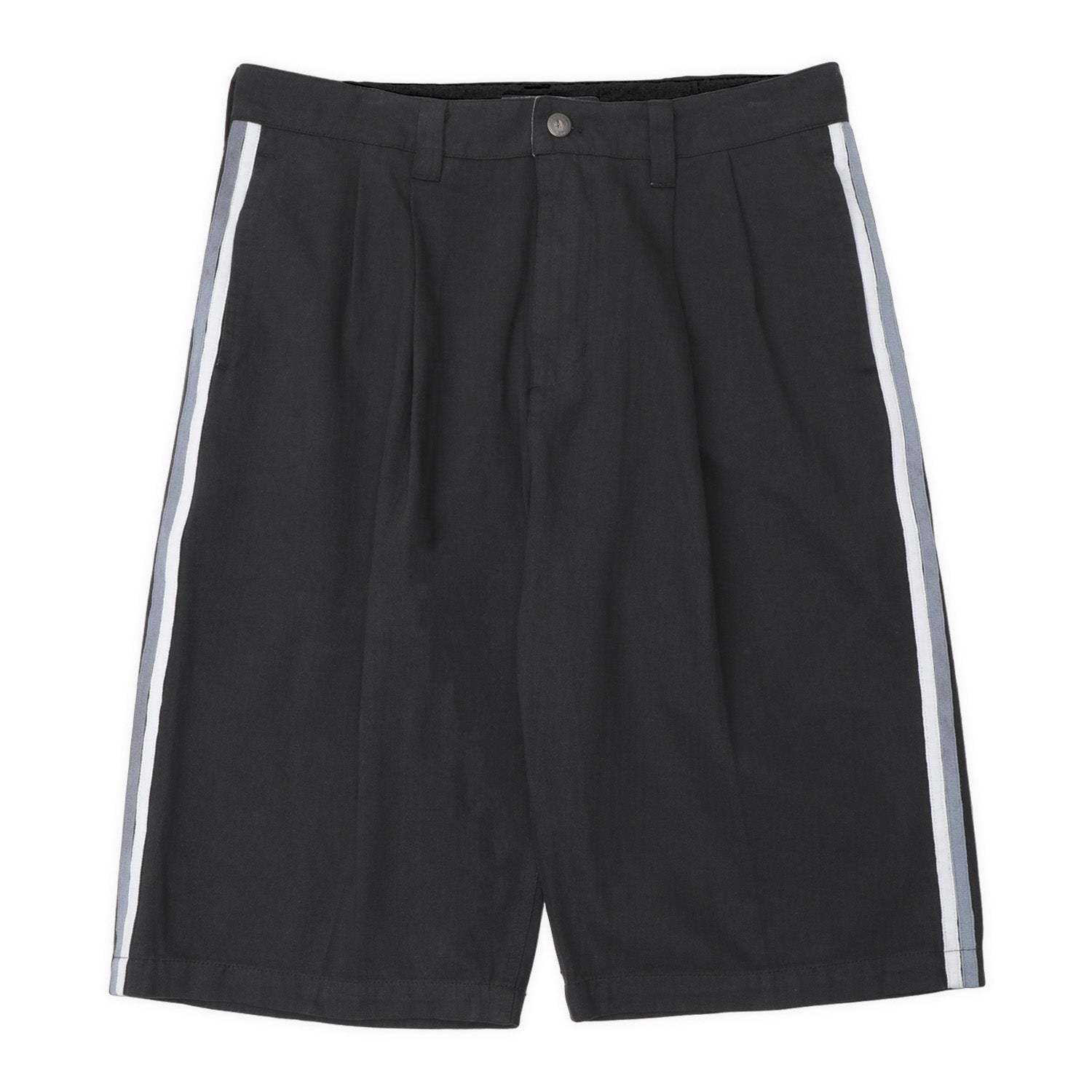 Pass~Port Leagues Club shorts in vintage black from range #46. The Leagues club short is made from 100% garment dyed cotton herringbone twill and features double pleats, contrast side stripe and custom button.