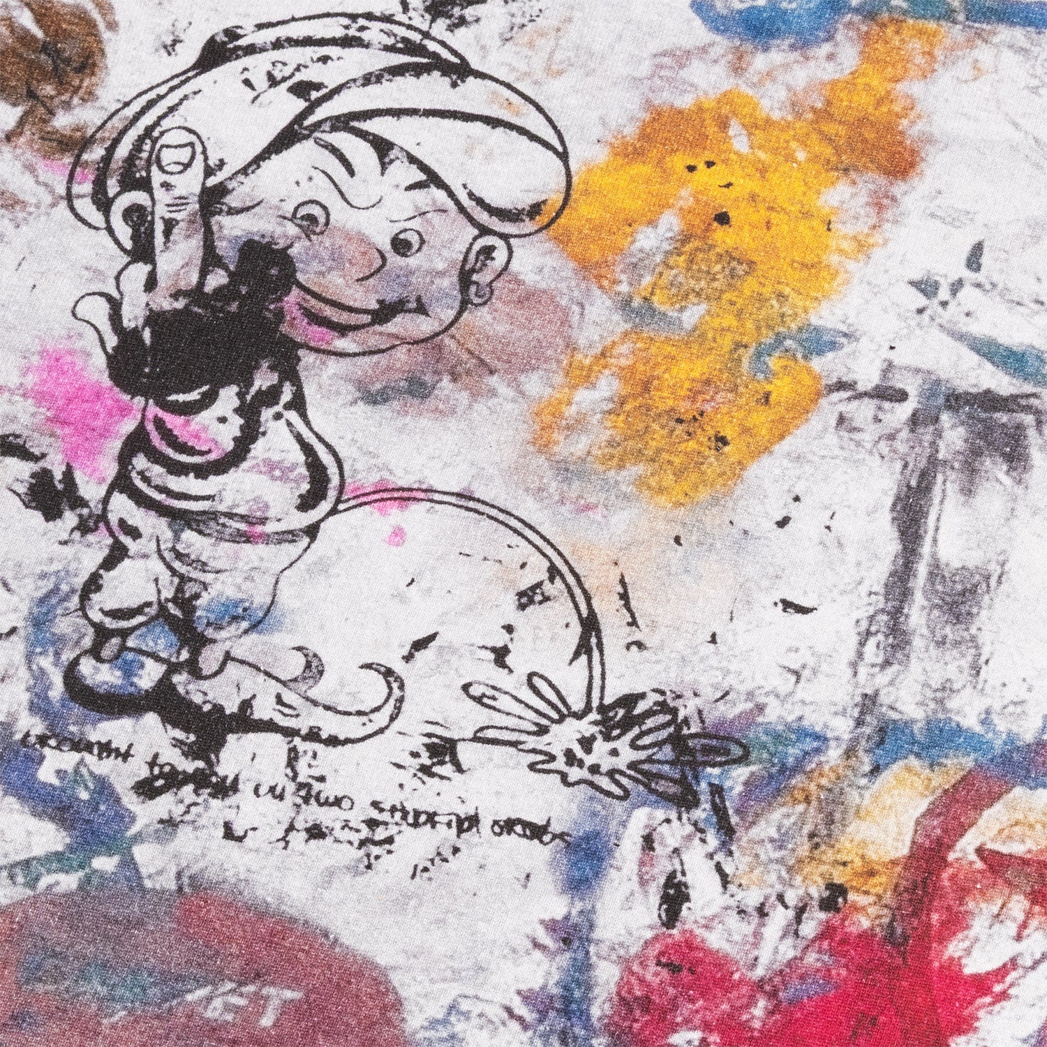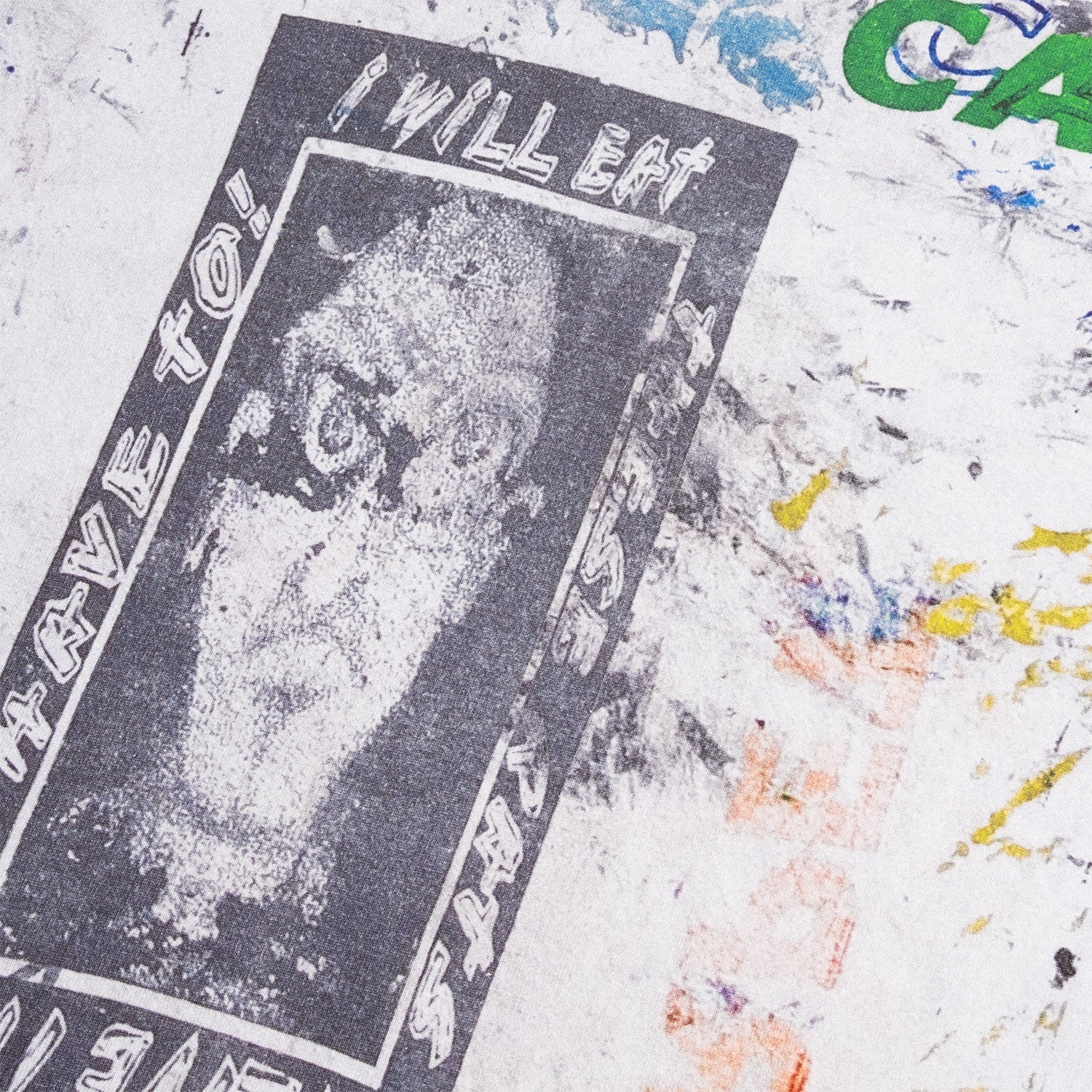 A rag tee made by cleaning everything and its mama. Used Immensely and Frivolously. Left no room to breath. Scanned and reprinted on a brand new tee. A shirt that has a forever life.