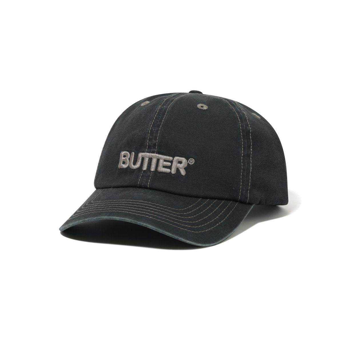 Cotton 6 Panel Cap, Mineral Wash, Contrast Stitching, Embroidery On Front, Self Fabric Strap & Metal Buckle Closure