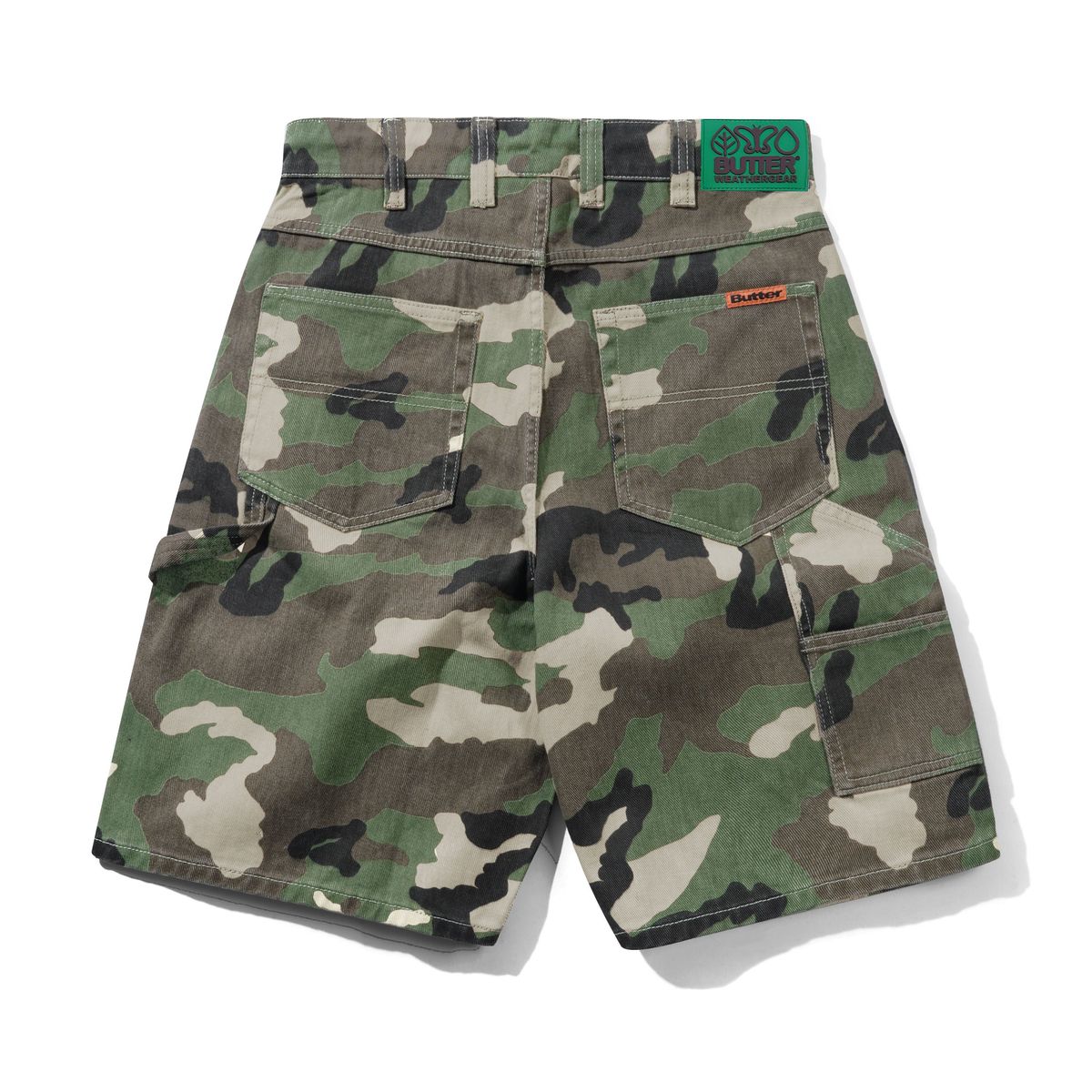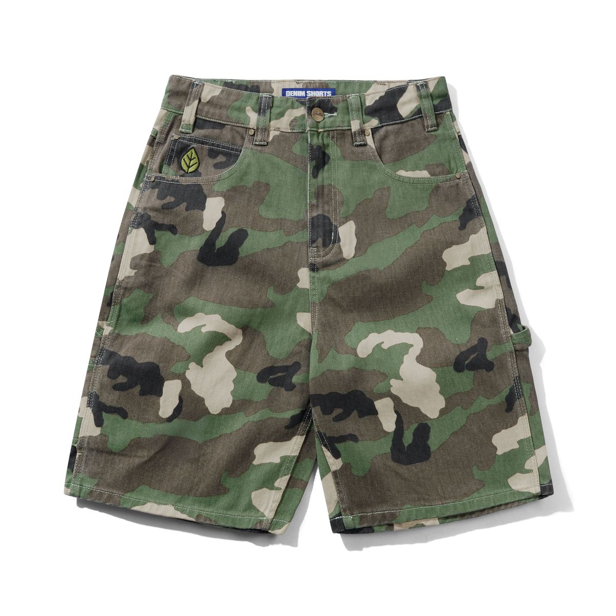 Heavy Weight (18oz) Baggy Fit Denim Shorts, Utility Pockets With Hammer Loop On Side, Embroidery On Front Coin Pocket, Patch Pockets On Back With Woven Label, Rubber Patch On Waist Band, Belt Loops With Internal Drawstring On Waist Band, All Over Custom Pattern.