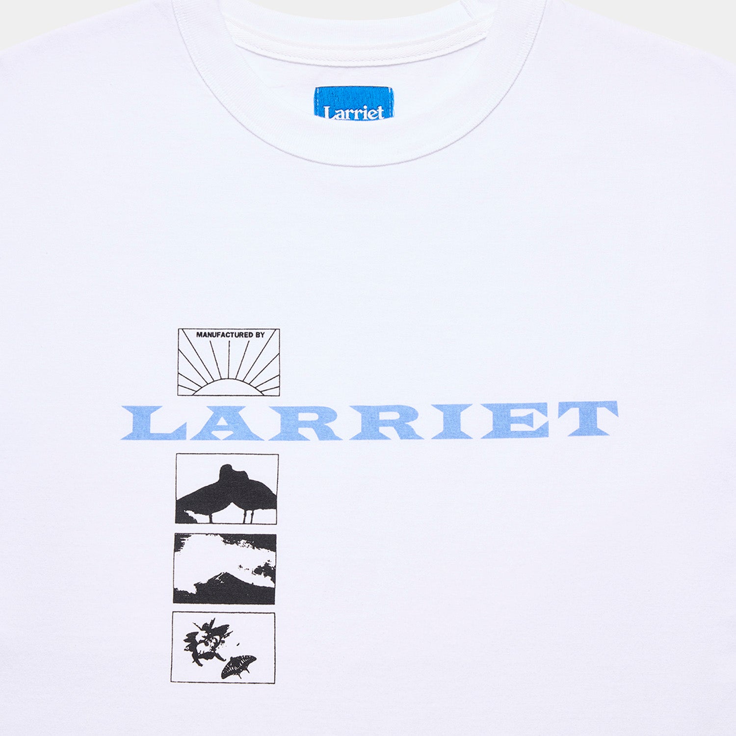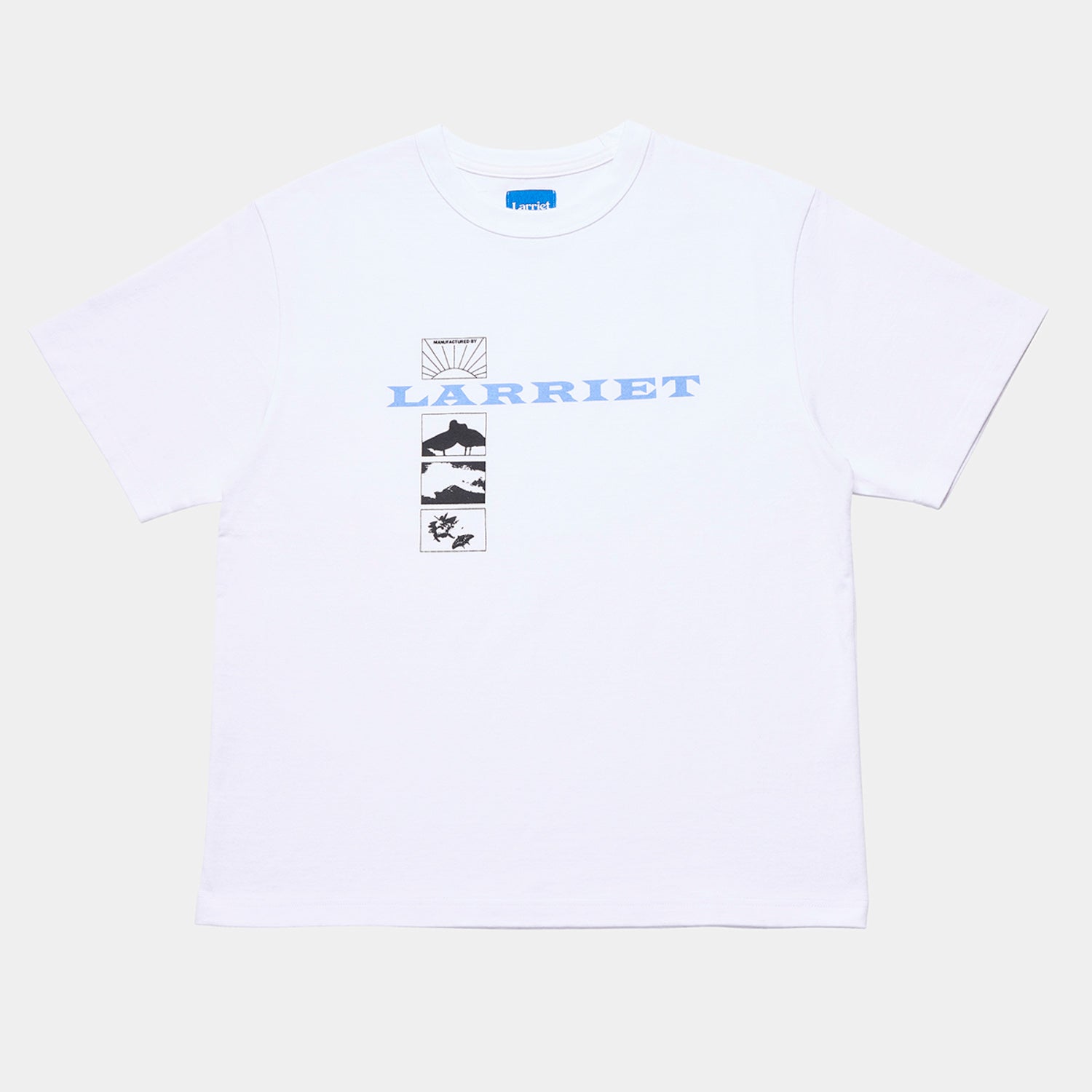 The Wings Tee in white is a midweight tee made from 100% cotton with a chest print. This classic, relaxed-fit t-shirt is built to last, crafted from hard-wearing jersey, and pre-shrunk to maintain its shape. It features twin-needle-stitched sleeves and hem, as well as shoulder-to-shoulder interior neck taping. Male model is 6'2" tall with a 30" waist and wears a size M.